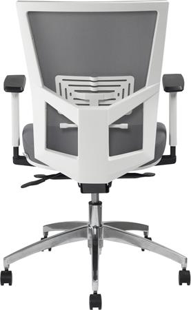 Irodai szék, karfás, hamuszürke szövet, feszített hálós háttámla, fehér váz, alumínium lábkereszt, MAYAH "Radar III"