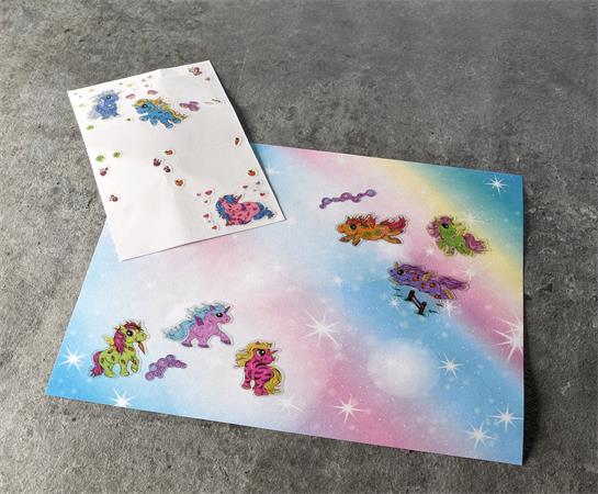Unikornis uralom! A varázslatos, csillogó matricáink csodálatos unikornisokkal mindenkit elvarázsolnak az elbűvölő és színes csillogásnak és a csodálatos tervezésnek köszönhetően. Az unikornis matricák tökéletesek levelek, meghívók, ajándékok, emlékkönyvek és vers albumok díszítéséhez. Ideális ajándéknak, díszítéshez, kézművességhez és természetesen gyermekek számára játszani.