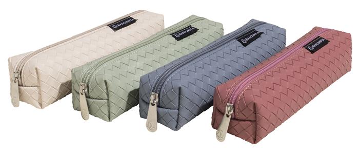 Fonott műbőrből készült tolltartó vegyes színekben.